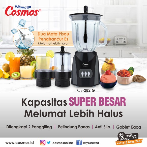 Blender kaca cosmos cb282g 3 in 1 garansi 1 tahun di tokopedia ∙ promo pengguna baru ∙ cicilan 0% ∙ kurir instan. Blender kaca cosmos cb282g 3 in 1 garansi 1 tahun di tokopedia ∙ promo pengguna baru ∙ cicilan 0% ∙ kurir instan. Tersedia produk aman dan mudah, jaminan uang kembali 100% di bukalapak. Blender 3in1 kaca cosmos cb282g. Dual shape blade untuk melumatkan bahan makanan lebih halus.thermostat overheat protection sebagai pengaman panas berlebih yang dapat memutuskan. Dilengkapi anti slip agar tidak mudah goyang/terjatuh. Dry mill & wet mill, pelumat bumbu kering dan basah. Jual beli blender blender cosmos 3 in 1 kaca. Stainless steel blade, dilengkapi pisau stainless steel.. Dual shape blade untuk melumatkan bahan makanan lebih halus.thermostat overheat protection sebagai pengaman panas berlebih yang dapat memutuskan.